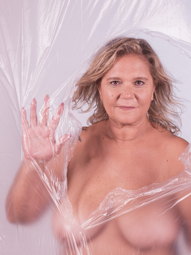 Il tumore al seno è la neoplasia più frequente in assoluto nella popolazione femminile. Si stima che nel 2018, in Italia, abbia colpito 52.800 donne. 1 donna su 8 nell’arco della vita si ammala di tumore al seno. La fotografia permette di fermare il tempo: testimone del dolore, della sofferenza, della possibilità di non farcela o di un futuro reale, di una vita intera, di un amore lungo una vita o solo quello di uno sguardo. Un frammento di vita bloccato nella finestra di un fotogramma si connette con tutti gli altri. A quel punto un “io” diventa un “noi”, un noi diventa tutti e infine di nuovo uno. Spostando il velo di paure, insicurezze, vergogna, delusione, tristezza e timidezza, ogni donna stringe con forza il proprio presente frutto del cambiamento. In questa apparente semplicità, tutte le barriere vengono squarciate per farsi strada nella verità, per diventare simbolo di una rinascita interiore, emotiva, concreta e consapevole. Ogni immagine è un simbolo che contiene luce e ombra. L’oscurità del nostro tempo diventa uno strumento che accoglie il cambiamento da cui, con volontà, nascono germogli di luce.